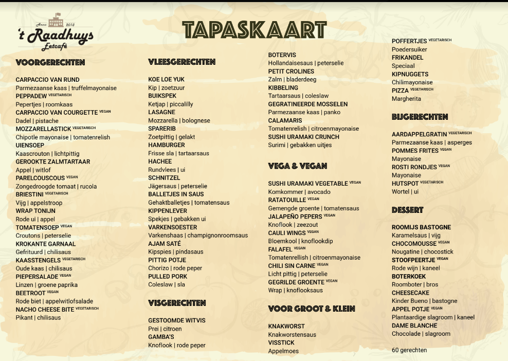 One of the standout features of 't Raadhuys is their tapas menu, highly praised by patrons. Each dish is a testament to culinary craftsmanship, where simplicity meets elegance. Customer reviews highlight the exquisiteness of the tapas, with flavors that linger and tantalize. Whether it's the Crunchy Beef Ragout Croquettes or their perfectly melted Grilled Cheese Sandwich, each item reflects a magical transformation of everyday ingredients into unforgettable dishes.
